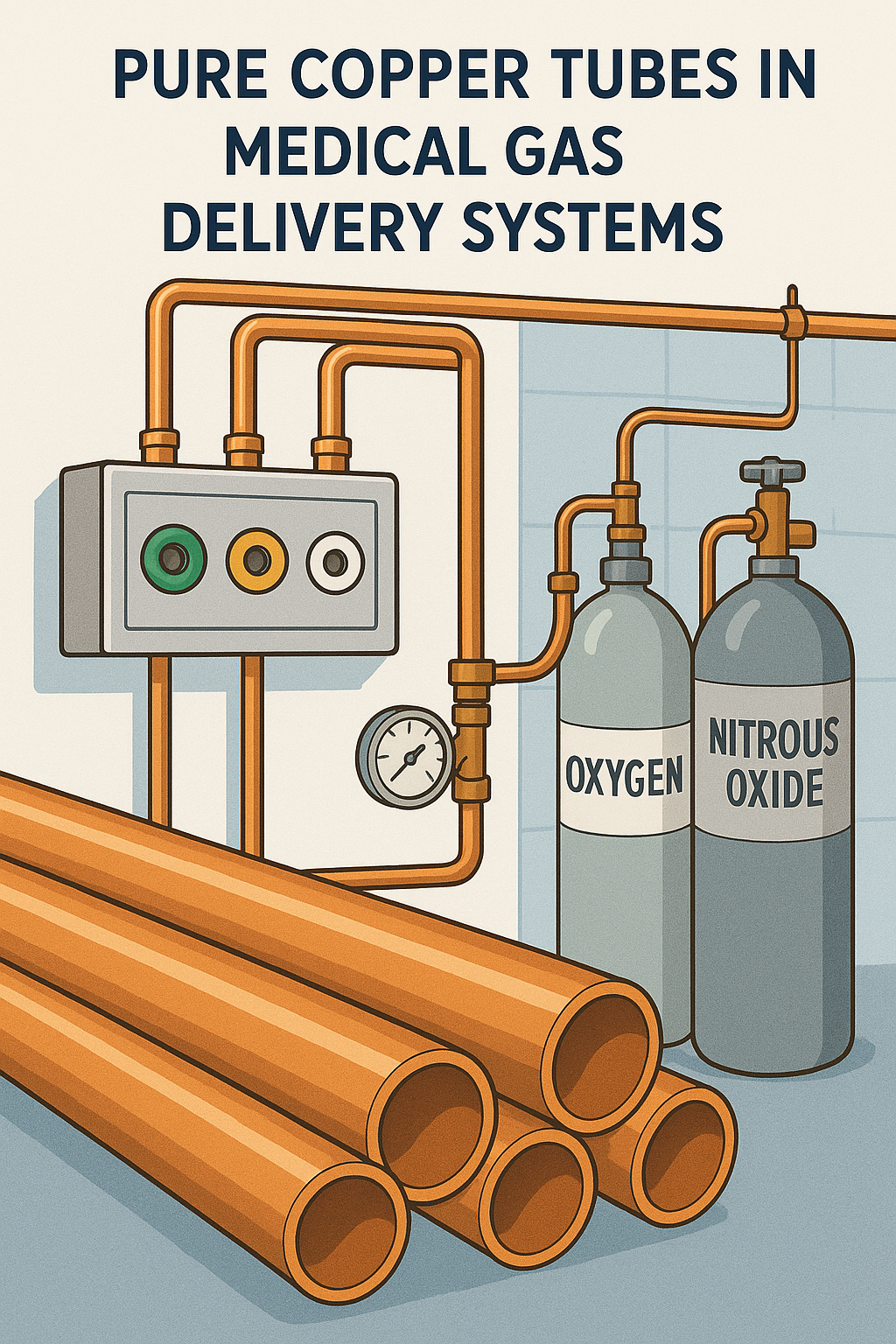 Jedna od najznačajnijih upotreba cijevi od čistog bakra u medicini je u sustavi za isporuku medicinskog plina . Bolnice i zdravstvene ustanove oslanjaju se na sustave medicinskog plina za isporuku kisika, dušika, dušikovog oksida i drugih kritičnih plinova pacijentima. Ti se plinovi koriste u raznim tretmanima, uključujući podršku disanju, anesteziju i u radu medicinskih uređaja.