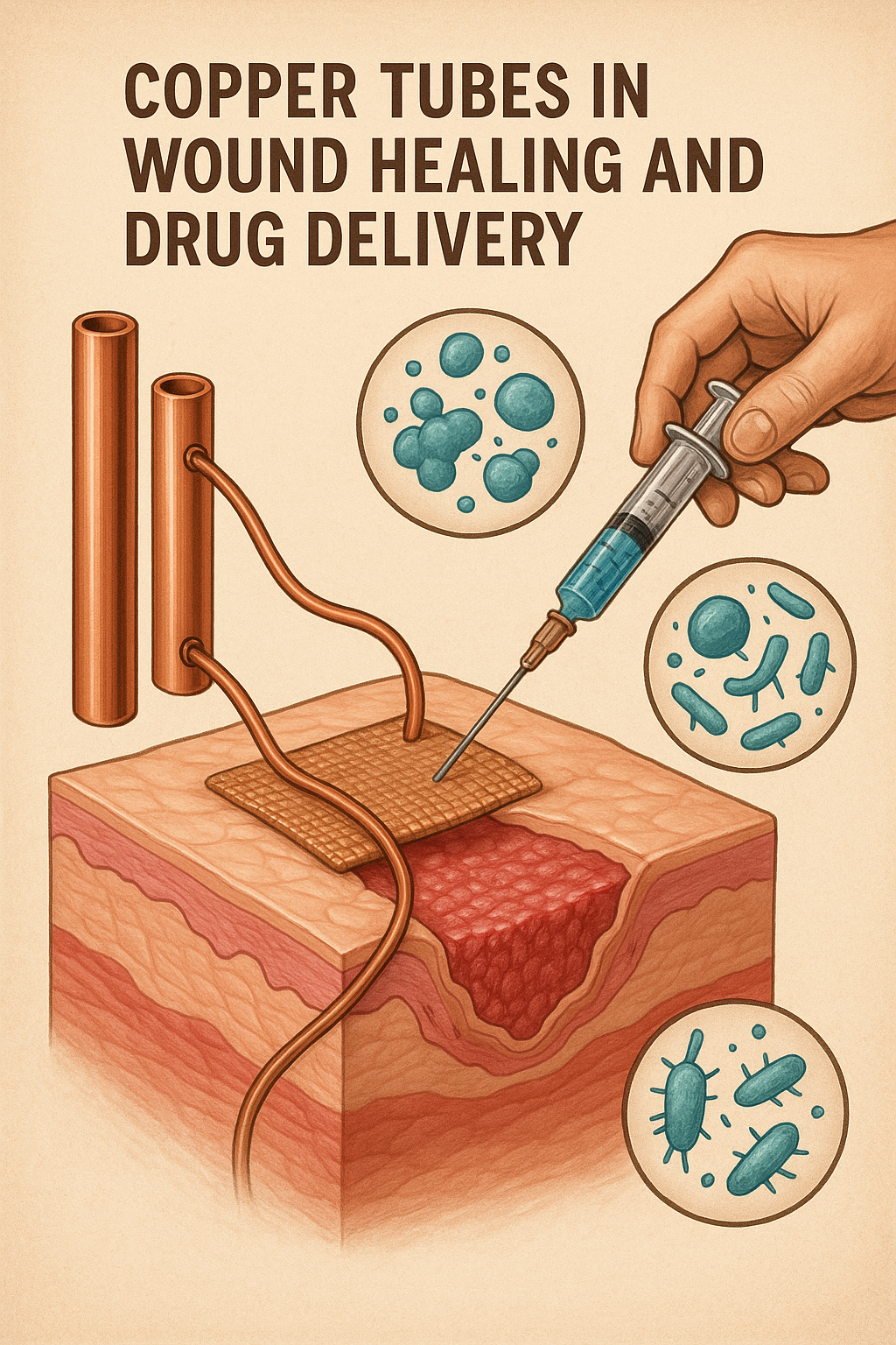| Zacjeljivanje rana i davanje lijekova | Bakrene cijevi ugrađene su u obloge s bakrom za kronično zacjeljivanje rana i lokaliziranu primjenu lijekova. | Ioni bakra potiču regeneraciju tkiva i sprječavaju infekcije, ubrzavajući proces ozdravljenja. |