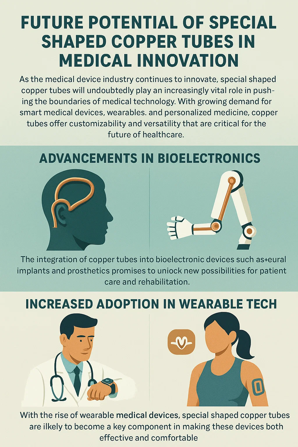 Napredak u bioelektronici : Integracija bakar tubes u bioelektronički uređaji kao npr neuralni implantati i protetika obećava otvaranje novih mogućnosti za njegu pacijenata i rehabilitaciju.
